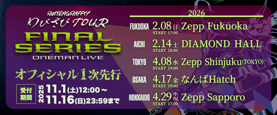- 「わびさびTOUR FINAL SERIES ONEMAN LIVE」オフィシャル1次先行受付開始!