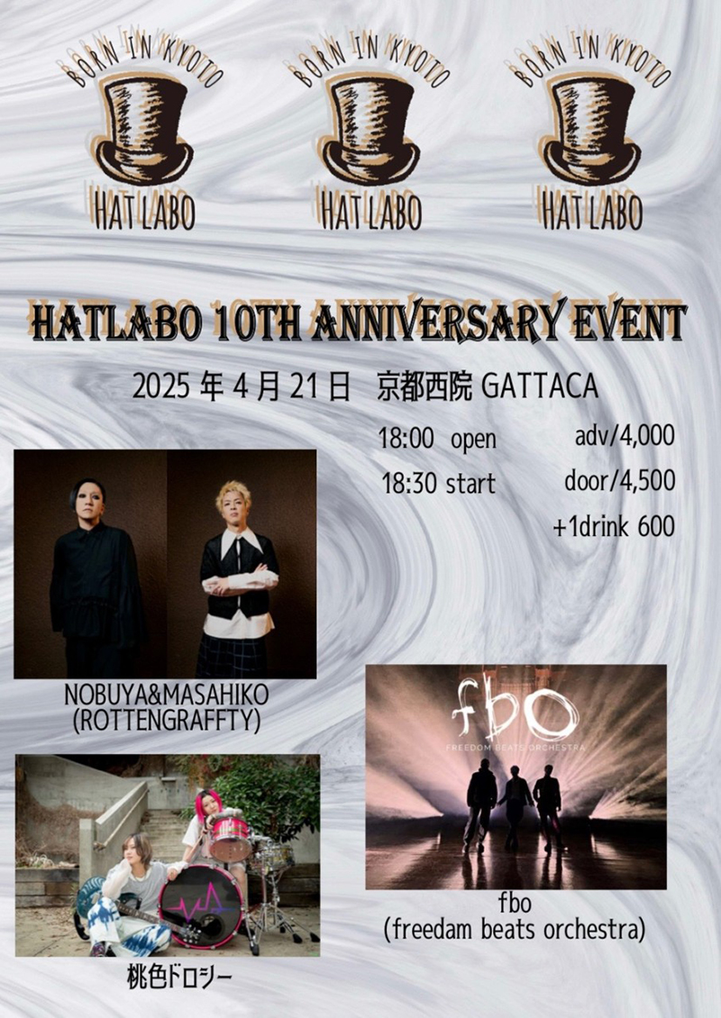 「HATLABO 10TH ANNIVERSARY EVENT」にNOBUYA、MASAHIKO出演決定!
