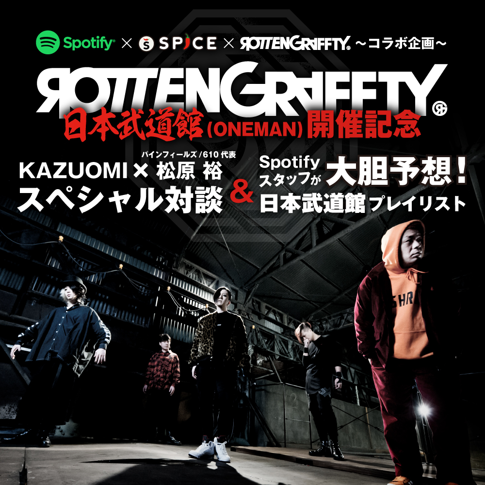 ROTTENGRAFFTY日本武道館(ONEMAN)開催記念〜KAZUOMI×松原裕(パインフィールズ/610代表)スペシャル対談&Spotifyスタッフが大胆予想!日本武道館プレイリスト〜