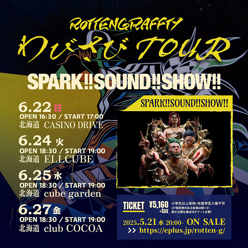 LIVE 2025/06/25(水) Thank you SOLD OUT!! わびさびTOUR @ 北海道 cube garden SPARK!!SOUND!!SHOW!! Share! 2025/6/25(水)OPEN 18:30 / START 19:00 ■ チケットチケット情報/注意事項はこちら ■ お問い合わせSMASH EAST < 戻る
