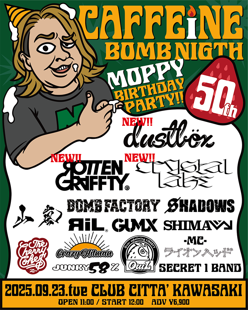 CAFFEINE BOMB NIGHT -MOPPY 50TH BIRTHDAY PARTY!!-